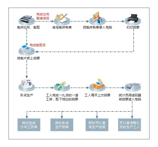 满足制衣厂裁床打菲、电脑收菲、计算工资,并进行生产进度跟踪的全面管理,减少差错,提高效率。